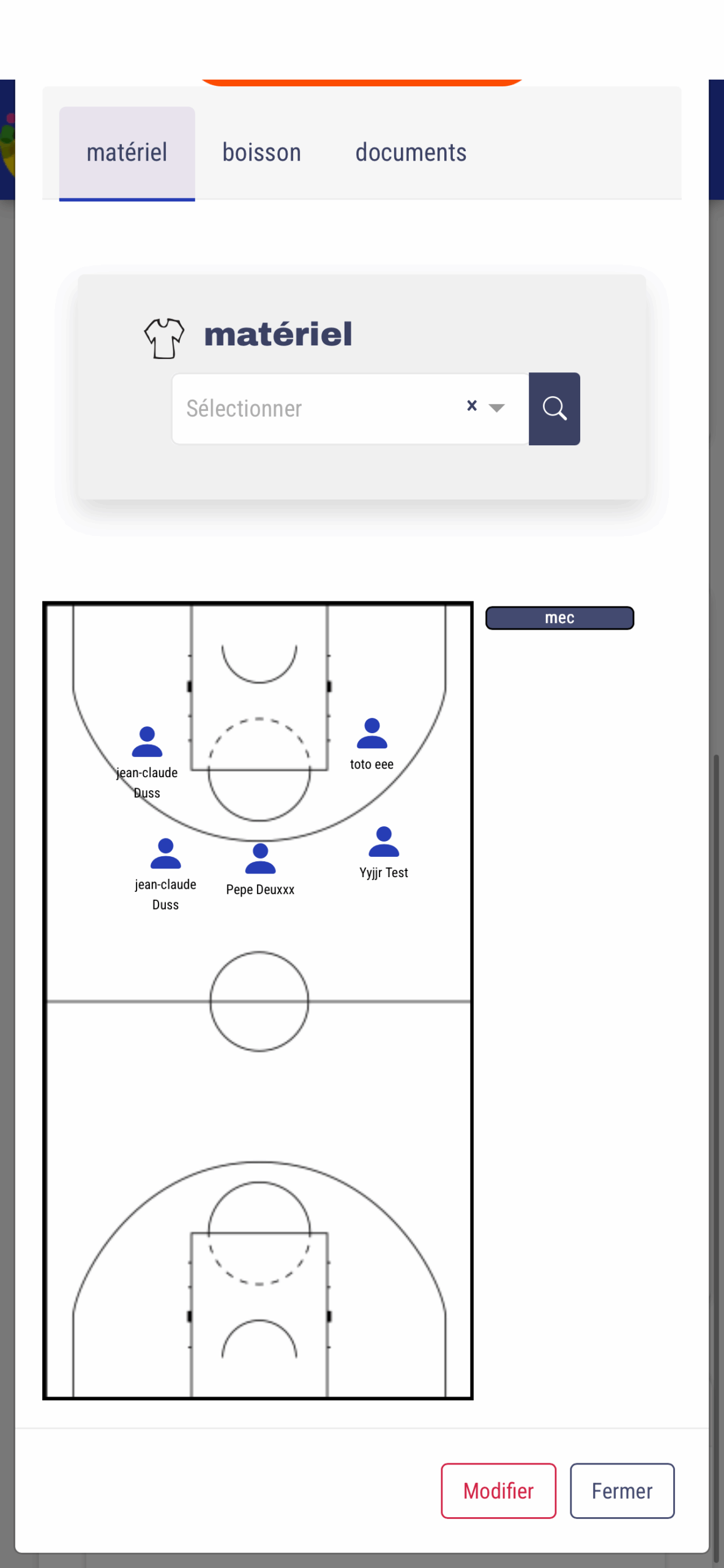 Depuis la fiche dâun Ă©vĂ©nement (match ou entraĂźnement), les joueurs sĂ©lectionnĂ©s apparaissent dâabord sur le banc. Le coach peut ensuite :
