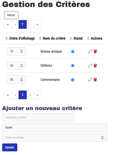 • Nom du critère : par exemple, « Attaque », « Défense », « Fair-play ».